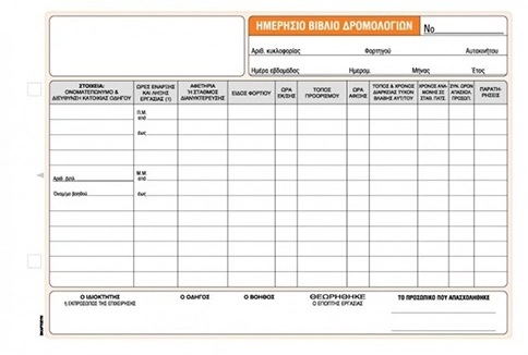 ΗΜΕΡΗΣΙΟ ΒΙΒΛΙΟ ΔΡΟΜΟΛΟΓΙΩΝ ΟΔΗΓΩΝ ΦΟΡΤΗΓΩΝ ΑΥΤΟΚΙΝΗΤΩΝ
